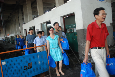 7月22日,江干區總工會主席黃建德、筧橋鎮工會主席王吉龍一行到東華鏈條集團向工作在高溫一線的員工送清涼,并送上慰問品。集團工會副主席高文生陪同慰問。