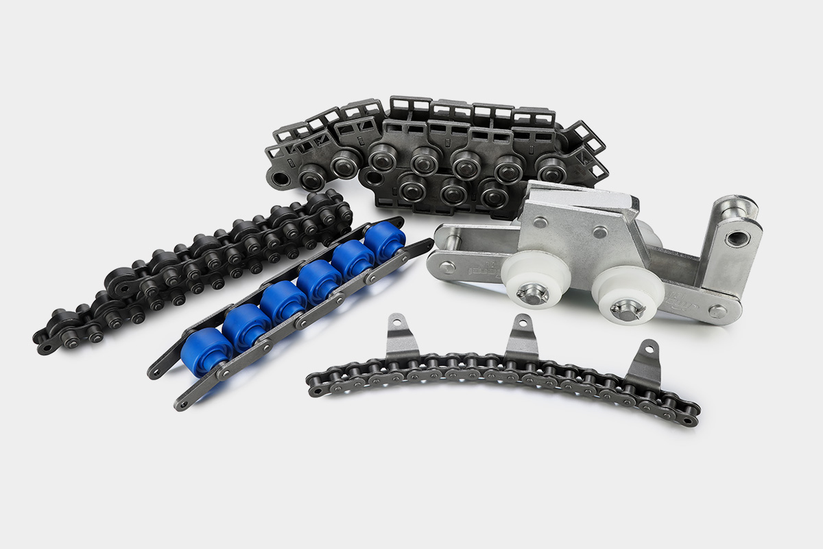●典型產品:短節距滾子鏈、雙節距輸送鏈、自由流動鏈、木材輸送鏈、長節距輸送鏈、肉類生產線輸送鏈、食品包裝機械用鏈條、空心銷軸鏈等及附件。