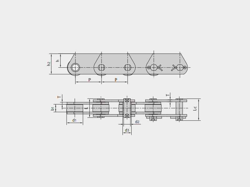 ● FV型為實心銷軸輸送鏈、FVC型為空心銷軸輸送鏈、FVT型為大滾子加高鏈板輸送鏈,F(xiàn)V型和FVT型鏈條有兩類抗拉強度指標(biāo)的產(chǎn)品可供用戶選擇。