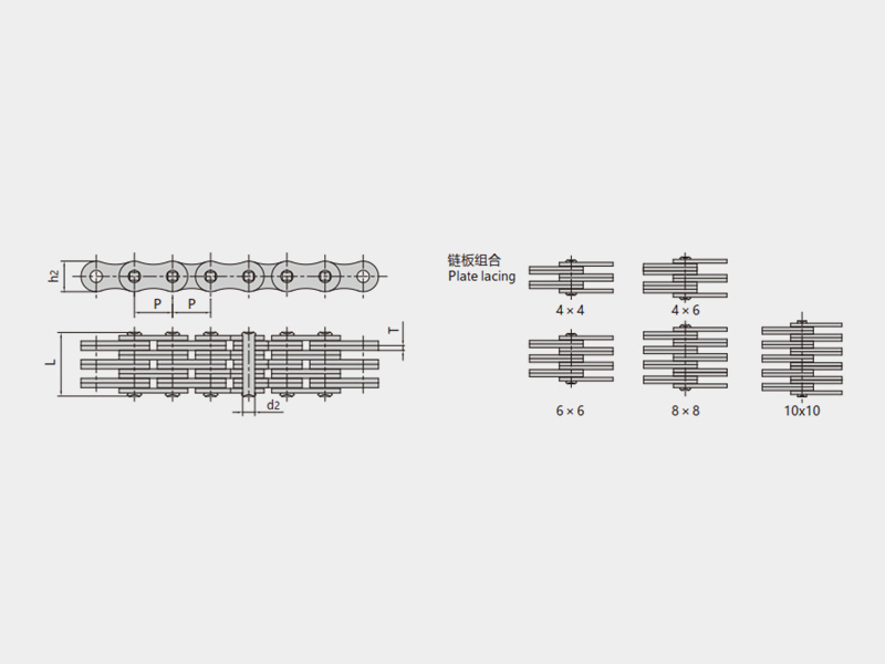 ● 堆高機用板式鏈是由標準板式鏈派生出來的一種特殊用途的板式鏈,主要用于港口集裝箱空箱堆高機,能滿足承載重量大、提升高度高等特點;
